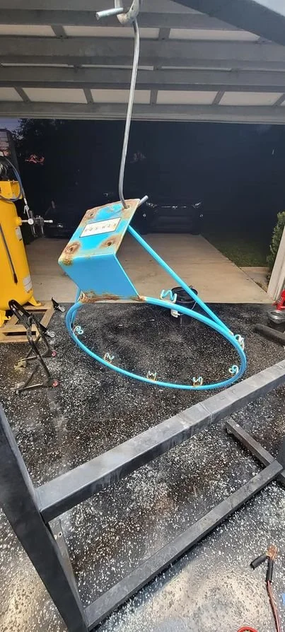 F-Bomb Bottle Opener in Army GreenCut By D-Formed Fabrication Before and After Basketball Hoop Coated in Powder Blue Grill Louvers coated in Polar White